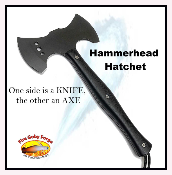 The Hammerhead Hatchet is a wonderfully unique procuct. It combines a sharp knife with a durable hand hatchet.
